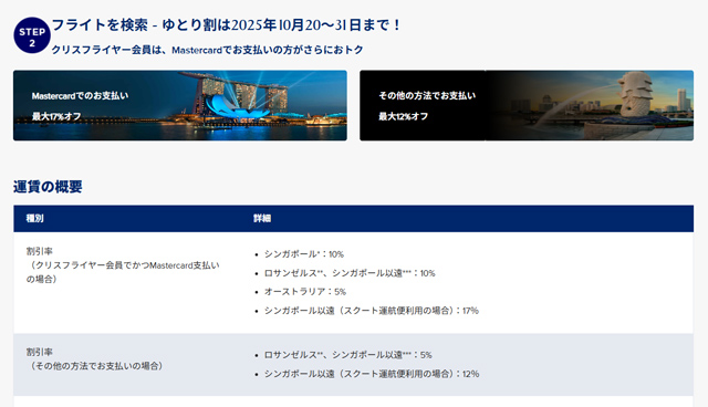 SQワンダーラスト ゆとり割 Mastercard®のお支払いで最大17%オフ! | シンガポール航空