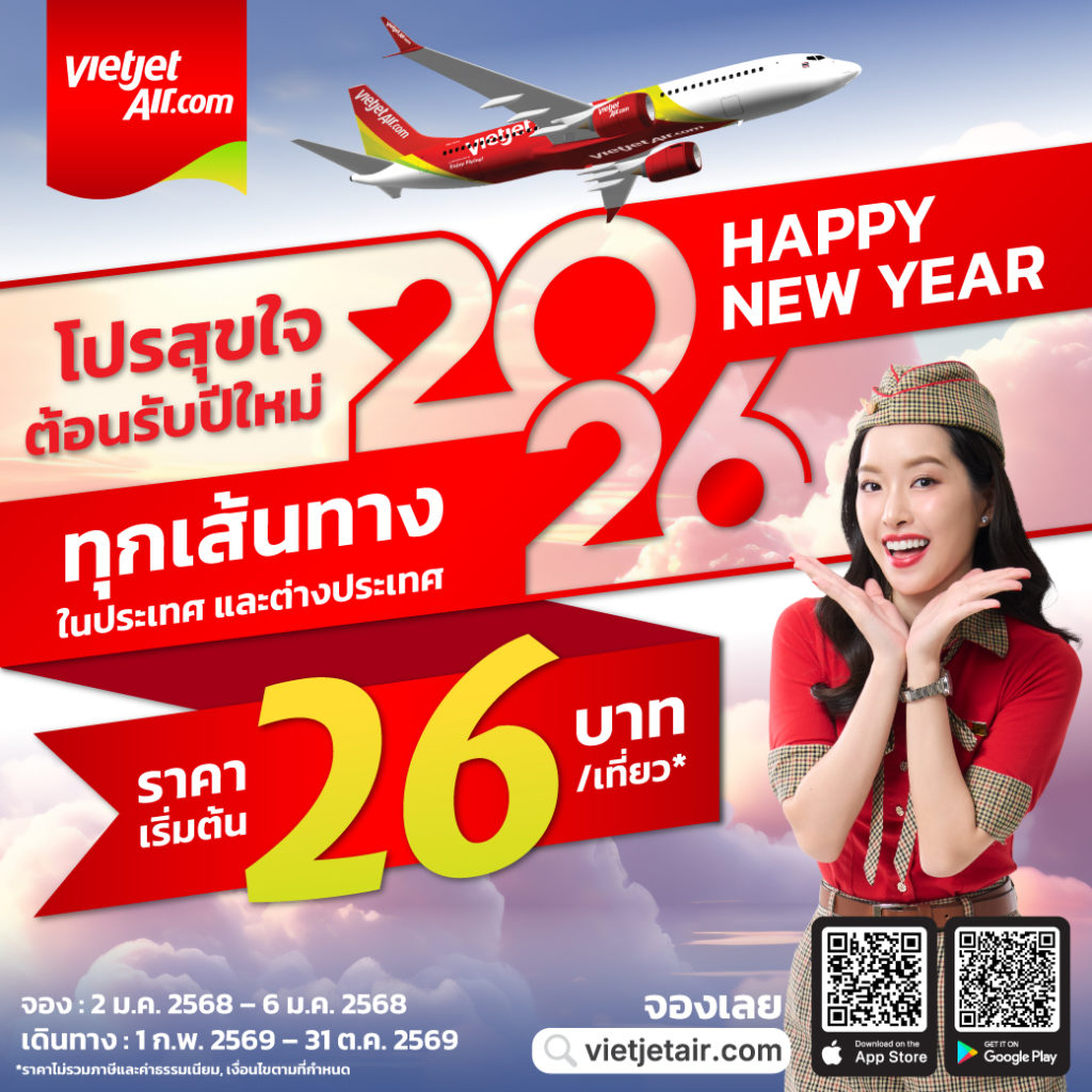 期間は1月6日までの5日間限定。セール運賃は2026年にちなんで26バーツ~(諸税は別途必要)。タイ国内線は空港使用料など諸費用込みで1,000円台~。